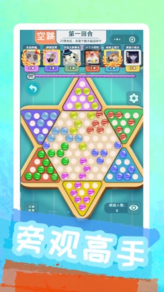 观战功能,可以实时观看高手对决,学习顶级玩家的战术思路和跳棋技巧