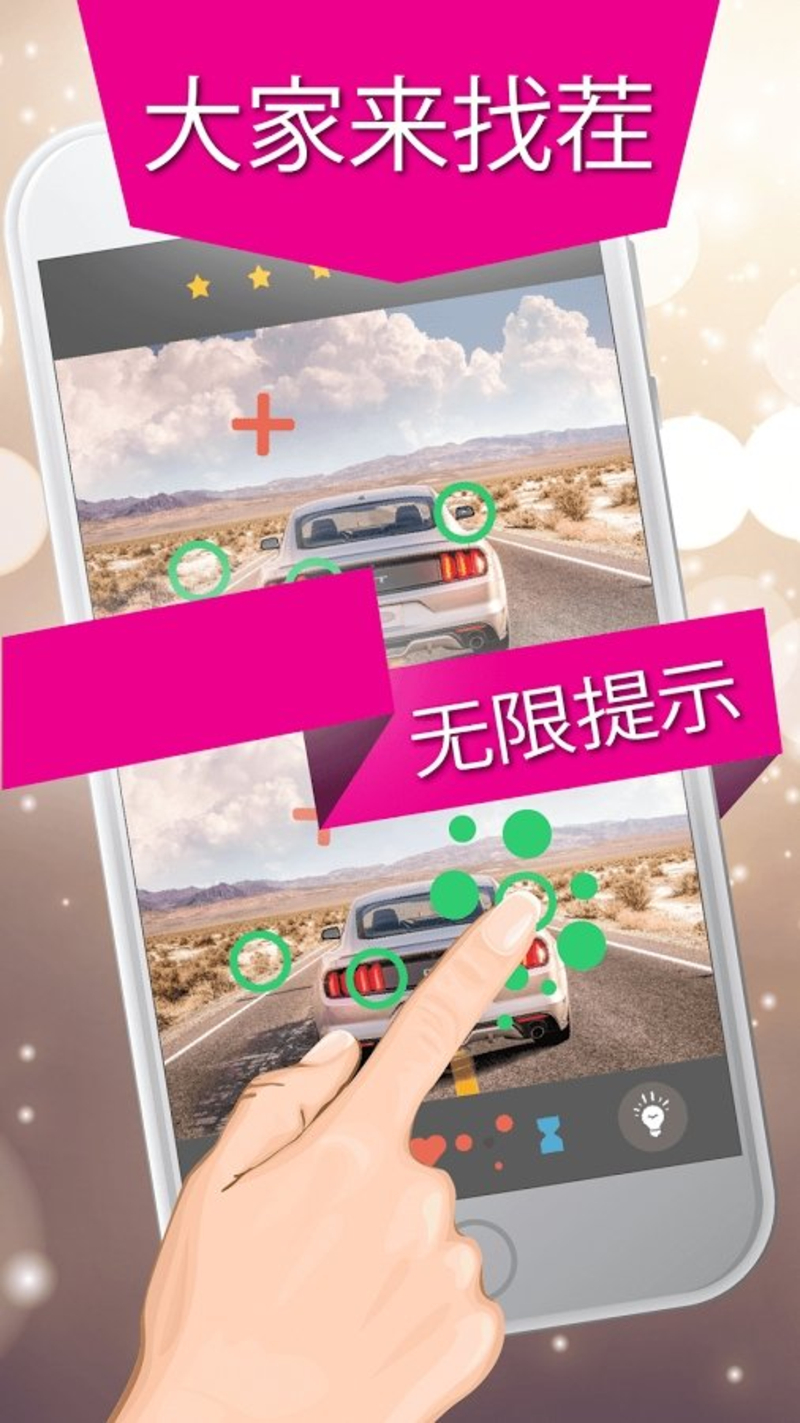 1.独特的"找不同"玩法,经典又有趣。在传统玩法基础上增加了动态差异等创新元素。2.丰富的关卡内容,耐玩性极高。基础版包含500+关卡,持续更新中。3.支持离线模式,无需网络也能畅玩。完整下载后所有内容均可离线体验。4.自定义难度设置,满足不同需求。可自由调整时间限制和差异数量。5.清晰的提示系统,帮助玩家顺利过关。提示分为三级,从模糊到精确逐步引导。6.精美的音效和动画,增强游戏体验。差异找到时有独特的视觉反馈效果。