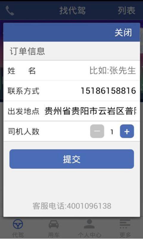 第三步:系统显示预估费用和可选司机信息,确认后提交订单;
