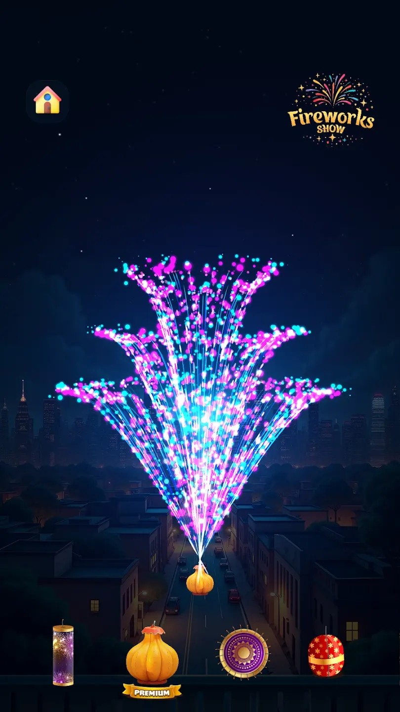 通过点击和滑动屏幕,玩家可以精准控制烟花的发射高度、飞行轨迹和爆炸时机。游戏提供了多种表演模式,从简单的单发烟花到复杂的组合表演,玩家可以根据自己的创意和技巧进行挑战。
