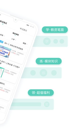 拥有专业的教师团队,可以在线为大家整合优质的教育资源。名师团队均来自一线教学岗位,深谙考试命题规律,能够精准把握考试动态。通过系统化的课程体系和个性化的学习指导,让用户们可以更加轻松的面对教师资格证的考试,大幅提升通过率。