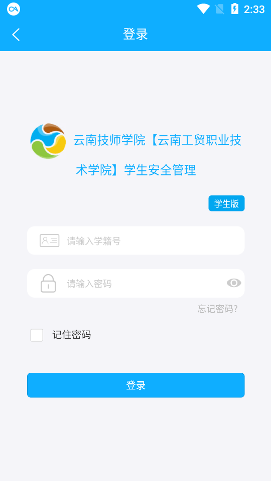 云南学生安全管理app是云南工贸职业技术学院专属打造的智能化校园安全服务平台。该应用集成了考勤管理、请假审批、紧急求助、隐患上报等多项实用功能,为学生提供全方位的安全保障服务。通过移动端便捷操作,学生可以随时完成日常考勤、提交请假申请,遇到紧急情况时还能一键发送求助信息。同时,平台还提供丰富的安全知识学习资源,帮助提升学生的安全防范意识,真正实现了校园安全管理的数字化、智能化转型。