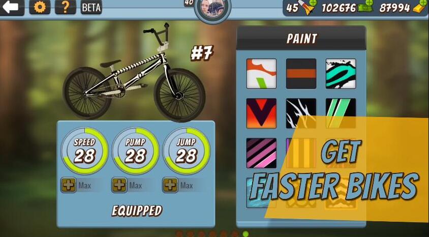 7种风格迥异的自行车可供解锁,每辆车都可以进行深度改装和性能升级,打造专属赛车;