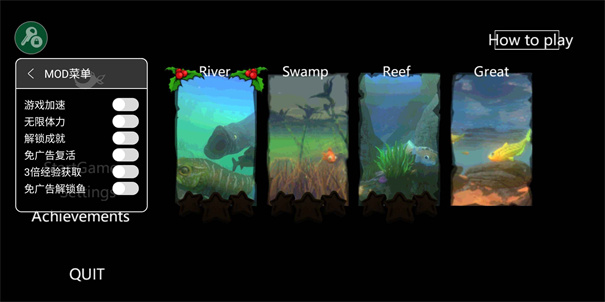 在这个模式下,玩家需要通过不断吞噬其他生物来壮大自己,最终目标是成为海洋霸主。系统允许玩家培育出体型远超常规的超级鱼类,甚至可以突破地图限制。三个主要地图区域各自拥有独特的生态系统和专属鱼类种群,玩家可以尽情探索每个区域的特色玩法。