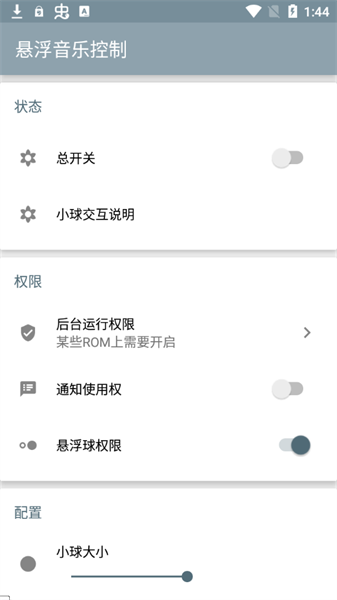 1、作为一款出色的音乐辅助工具,它不仅支持常规的音乐界面操作,还创新性地加入了移动模式,让用户在任何界面都能轻松控制音乐播放。外观自定义功能更是锦上添花,可以随心所欲地打造专属悬浮球。