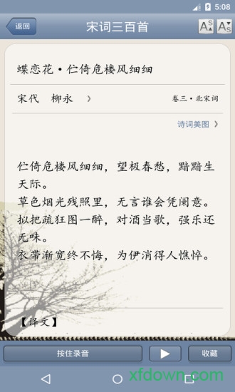 5、学习辅助:创新性地加入朗读功能、生字标注和典故详解,帮助用户全方位理解词作内涵。