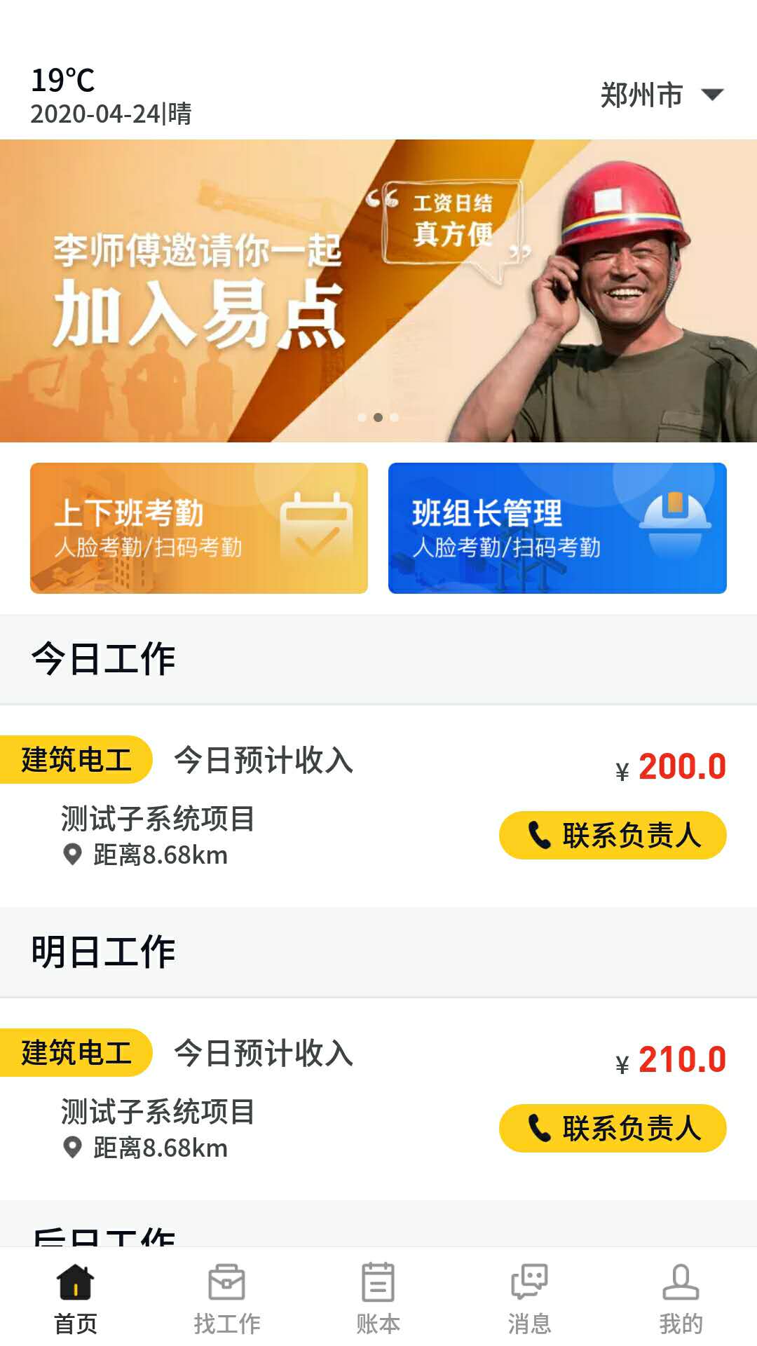 易点天工APP是一款专为建筑行业从业者打造的智能化用工管理平台,致力于为工人和用工方搭建高效便捷的对接桥梁。通过精准的定位匹配和智能算法,用户可以快速获取周边工地招工信息,实现一键报名上工。平台提供从找工到结算的全流程服务,包括工种筛选、工资查询、考勤记录等核心功能,让建筑工人告别传统找活方式,享受数字化带来的便利。所有用工数据实时同步,工资明细清晰可查,确保每一分劳动所得都能安全到账。