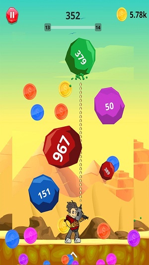 2、游戏内置完善的奖励系统,粉碎特殊石块可获得双倍积分,连续命中还能触发连击奖励,这些机制激励玩家追求更高分数,同时也能兑换各种实用道具。