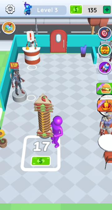 2、引人入胜的挑战:随着游戏进行,您将遇到各种特殊事件和限时任务,比如万圣节主题派对或僵尸美食大赛,这些活动带来丰厚奖励的同时也考验您的经营能力。