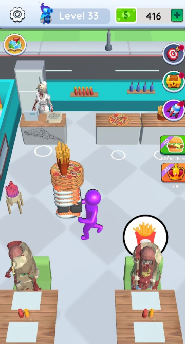 2、提升技能:通过完成订单和特殊任务来积累经验值,解锁更高级的烹饪技巧和经营策略。每提升一个技能等级,您就能获得新的食谱或餐厅设施,为僵尸顾客提供更优质的服务。