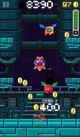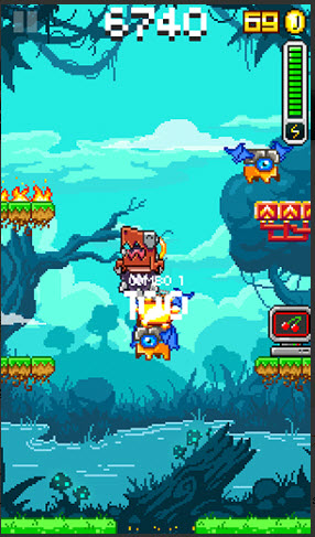 SlamBots《跳跃机器人》的世界完全由方块像素构成,从主角机器人到各种建筑物、机关陷阱,都采用了极简的像素风格设计。这种看似简单的画面风格却营造出了一个充满挑战的游戏环境。游戏操作非常直观,玩家只需通过摇晃屏幕就能控制机器人的左右移动,操作方式类似于经典游戏《冒险岛》的玩法机制。玩家需要通过精准的跳跃踩踏来消灭敌人并获得分数。