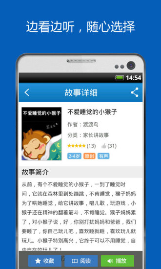 互动分享:提供便捷的社会化分享和收藏功能,方便家长与朋友分享优质故事资源。