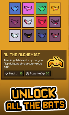 1、通过点击屏幕控制蝙蝠上下飞行,需要精准把握时机避开随机出现的障碍物与敌人攻击,考验玩家的反应速度与预判能力。