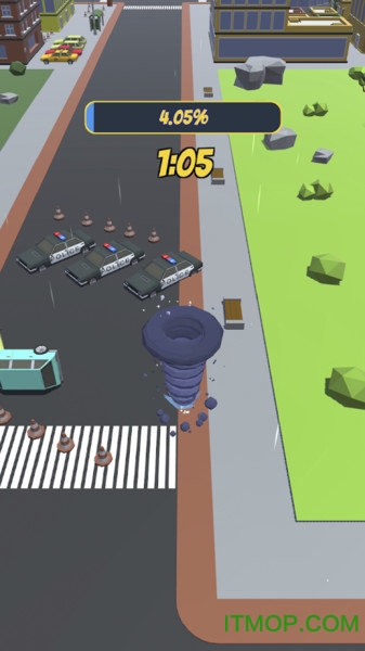 玩家在游戏中扮演一个初始规模较小的龙卷风,通过吞噬街道上的行人、车辆和各种物品来不断壮大自己。游戏采用直观的触控操作,让你能够轻松控制龙卷风的移动轨迹。