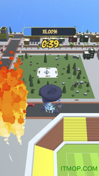 龙卷风大乱斗是一款极具破坏力与爽快感的休闲竞技游戏,采用独特的低多边形美术风格,为玩家呈现出一个色彩鲜明、充满活力的城市破坏场景。在这款游戏中,你将化身大自然最狂暴的力量——龙卷风,通过吞噬街道上的一切来不断壮大自己,体验前所未有的破坏快感。