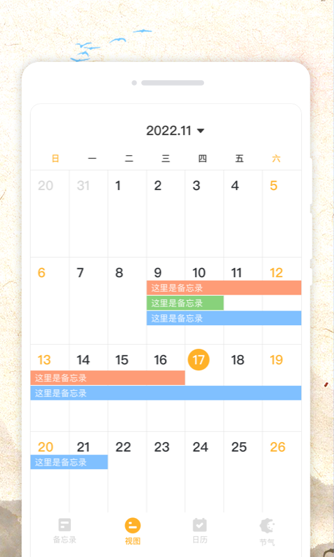 作为一款专业的日历工具,秋分农历拥有强大的时间管理功能。用户可自定义设置生日、纪念日等重要日期,系统会通过智能提醒确保您不会错过任何关键时刻。除了基础的公历/农历转换功能外,还提供节假日标注、节气倒计时等特色服务。特别设计的日程管理模块支持多设备同步,无论工作安排还是家庭计划都能井井有条。更有贴心的天气预报关联功能,让您的每日规划更加周全。