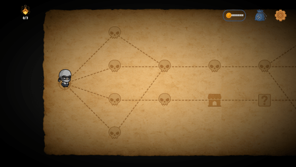 下载安装游戏后打开,游戏已内置中文语言,玩家可直接点击开始游戏进入冒险。初始阶段玩家只能使用基础忍者队伍,需要通过完成关卡来逐步解锁更多强力角色和更高难度。游戏采用节点式地图设计,玩家需要在前进路线上做出选择,不同图标代表不同事件类型:骷颅头标志表示战斗遭遇,商店图标可购买装备,问号则代表随机事件。游戏开始时会提供详细的新手引导,建议玩家先熟悉基础操作方式。战斗环节采用创新的骰子驱动机制,玩家需要将投掷获得的骰子拖拽到对应卡牌上,来发动攻击、防御或特殊技能。随着游戏进程,玩家将解锁更多复杂的战术组合。