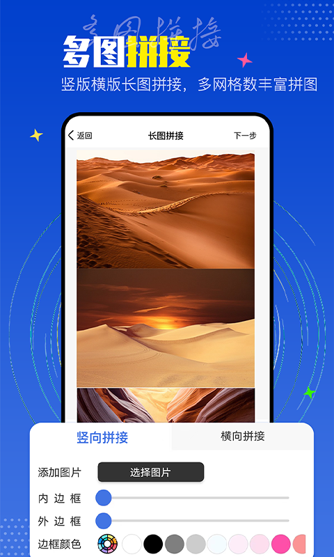 长图拼接功能可以无缝拼接多张图片,制作出完美的长图效果,特别适合展示连续内容或制作教程图解。网格拼图功能提供多种网格数选择,丰富您的拼图形式,让创意表达更加多样化。台词拼接功能专为影视爱好者设计,可以轻松拼接多张截图中的台词字幕,制作出完整的对话记录。