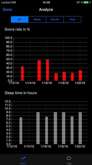 SnoreClock是您夜间睡眠的忠实记录者,通过精密算法自动识别并标记打鼾时段。不同于普通录音软件,它能智能区分环境噪音与人体声音,准确捕捉睡眠中的异常声响。应用会自动生成详细的睡眠报告,包括打鼾频率、持续时间和强度分析,帮助您科学评估睡眠质量。专业级的声纹识别技术确保不会错过任何重要细节,让您对自己的睡眠状况了如指掌。