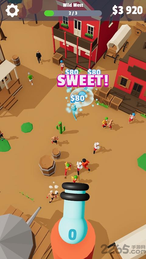 1、游戏对射击精准度要求极高,玩家需要精确计算弹道和落点。场景中会有大量奔跑的小人增加障碍难度,这种设计大大提升了游戏的挑战性和趣味性。