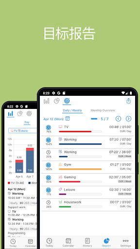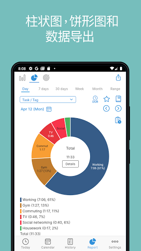 - 可视化报告:通过柱状图和饼图呈现时间分配