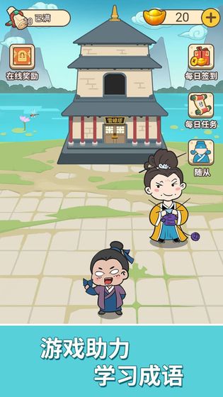 游戏融入了角色成长系统,通过完成成语挑战可以推动剧情发展,体验古代文人从科举及第到功成名就的完整人生历程。