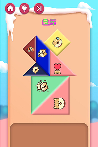 游戏采用经典七巧板元素,通过七块不同形状的拼图组合,可以创造出无限可能的图案。从简单的几何图形到复杂的创意造型,从可爱的小动物到英文字母,甚至是日常生活中的各种物品,都能通过巧妙的拼搭呈现出来。游戏界面简洁明了,操作简单直观,只需用手指拖动拼图块到指定位置即可完成挑战,特别适合3-12岁的儿童玩耍。