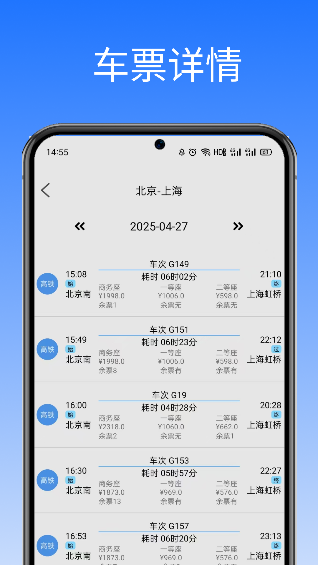 一站式服务:从查询到购票,再到行程管理,满足用户所有需求,无需切换多个应用。