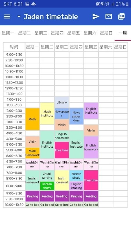 支持将创建的时间表导出为专业PDF文档,特别优化了A4纸打印格式。每周最多可进行4次PDF转换,即使没有制定完整计划,系统也会自动生成空白时间表模板。通过无线打印功能,您可以随时将计划打印出来随身携带。