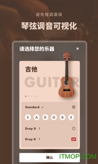-支持6种常见弦乐器,吉他、尤克里里、贝斯、小提琴、中提琴和大提琴。每种乐器都有专门的调音算法,确保最佳调音效果。