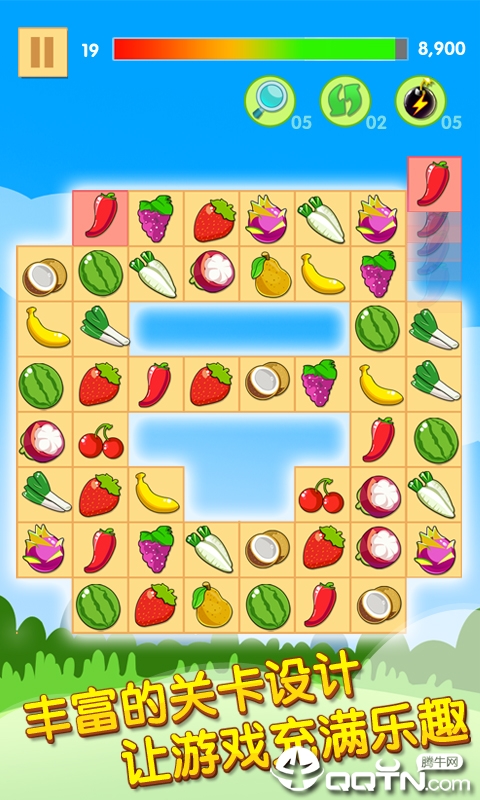 经典连连看玩法,简单易上手,适合全年龄段玩家轻松体验。丰富多彩的水果主题,画面清新亮丽,每一帧都充满活力与生机。多种关卡设计,从简单到复杂循序渐进,挑战性十足让玩家欲罢不能。道具系统丰富多样,包含各种特殊效果道具,大大增加游戏趣味性和策略性。单人模式和双人对战模式完美结合,满足不同玩家的娱乐需求。成就系统和排行榜功能设计精巧,激发玩家竞争欲望,让游戏更具持久吸引力。