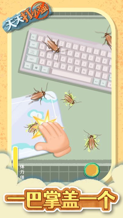 小强们不仅跑得快、壳硬,还会装死和飞行,简直防不胜防!面对这些难缠的对手,玩家需要不断提升角色的各项能力:增强体力可以连续拍打更多次,提高速度可以追上快速移动的小强,增加力度可以一击毙命,扩大尺寸还能一次拍打多只小强。通过合理的属性搭配,让你轻松送小强们上西天!
