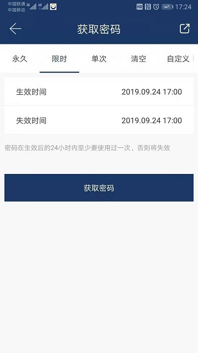 密码类型有单次、永久、限时、自定义、循环等,满足不同使用场景。用户可以根据实际需求灵活设置,比如为临时访客设置单次密码,为家庭成员设置永久密码,为保洁人员设置限时密码等。