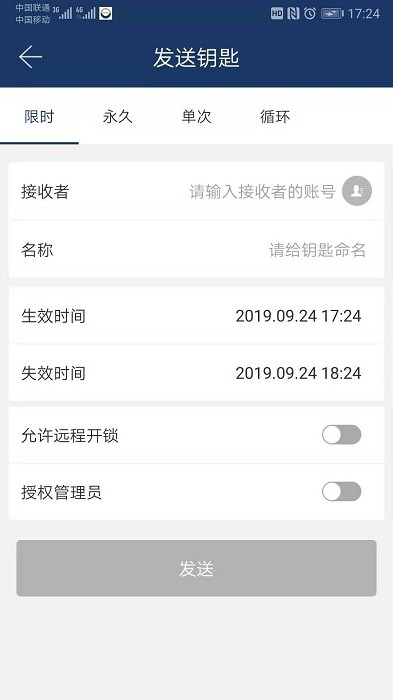 同时,锁的管理员可以通过app分享蓝牙钥匙给其他人,授权其他人用也用手机开锁、闭锁。权限管理精细到具体时间段和操作类型,确保授权范围可控。