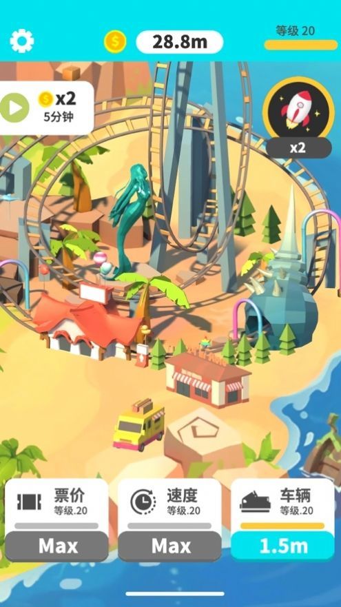 玩家可以在多种主题环境中建设游乐园,每个场景都配有专属的视觉风格和特殊挑战。沙漠中的绿洲飞车、雪山之巅的极速滑道,或是热带雨林中的丛林探险,多样化的选择让经营策略更具深度。环境因素还会影响飞车性能,增加游戏的真实感和策略性。