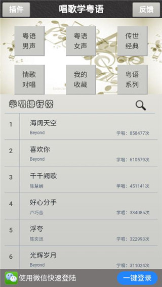 唱歌学粤语app都是您不可错过的学习伴侣。现在就下载体验,让经典粤语歌声伴您开启愉快的语言学习之旅吧!
