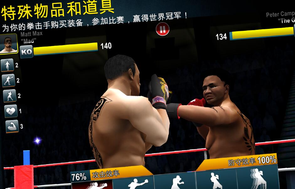 丰富的装备系统让玩家可以自由定制拳击手形象,从专业拳击手套到个性化的纹身图案,打造独一无二的拳坛形象。游戏还收录了大量真实拳击明星的招牌动作,让玩家可以学习职业选手的经典战术。