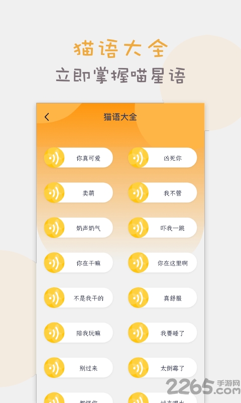 猫语翻译:猫语翻译成人话,让您感受猫咪的情绪!升级后的翻译引擎能识别更多种类的猫叫声,包括呼噜声、嘶嘶声等特殊发音。