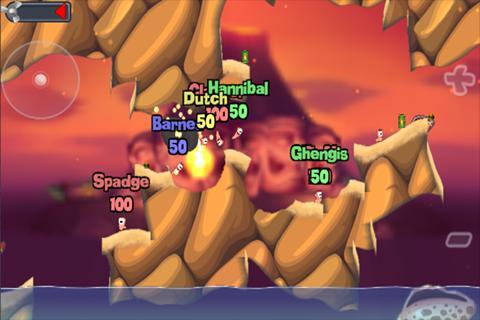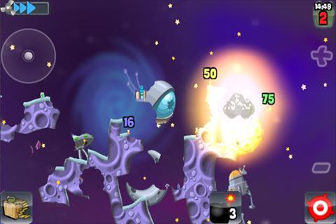 在游戏当中为玩家准备了不同的游戏类型,在传统的单人模式当中一共为玩家准备了5个场景以及80个关卡等待玩家来挑战,在前几个关卡当中主要是为了玩家能够熟悉游戏的操作,所以并不会有什么难度。游戏依然采用了虚拟按键的操作方式,玩家点击方向键控制虫子的移动以及瞄准的方向,在有限的时间内虫子可以随意进行移动,不过如果进行了攻击或者是自己的生命值受损那么本回合将会直接结束。当玩家将对方的虫子消灭完之后将会获得胜利,并根据表现获得星级评价,还有宝箱奖励,不过开出什么道具就要看玩家的运气了。随着关卡推进,地形会变得更加复杂,需要玩家掌握更精准的射击角度和力度。