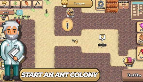 培育蚂蚁:培育不同种类的蚂蚁,组建强大的蚁群。每种蚂蚁都有其独特的能力,玩家需要根据当前需求来调整蚂蚁种类的比例,以应对不同的挑战。