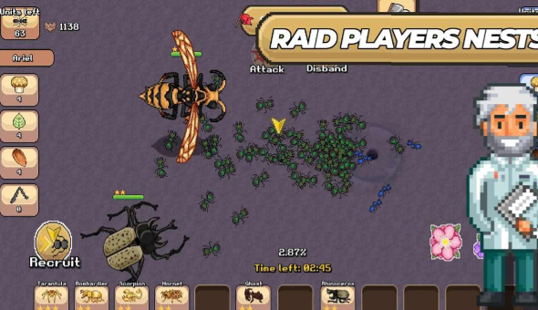 玩家组建强大的蚂蚁队伍,消灭诸多敌人,完成任务,称霸这里。队伍搭配策略丰富,玩家可以根据不同敌人特点调整队伍配置。