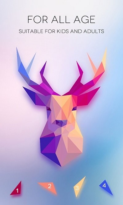 您可以通过数字将彩色多边形逐个拖动到正确的位置来为图像着色,这个过程既考验观察力又充满成就感。