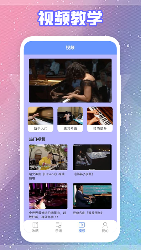 支持各种不同的教学模式,这是款在线看视频学习的软件,支持画中画模式边看边练;各种基础教学视频等都有,安全好用的手机学习平台,所有内容都经过严格审核;支持各种不同难度的教学课程,为各位学习乐器提供更多帮助和便利,系统会根据用户水平智能推荐课程。
