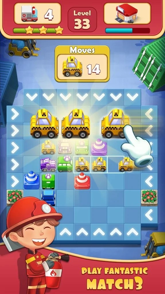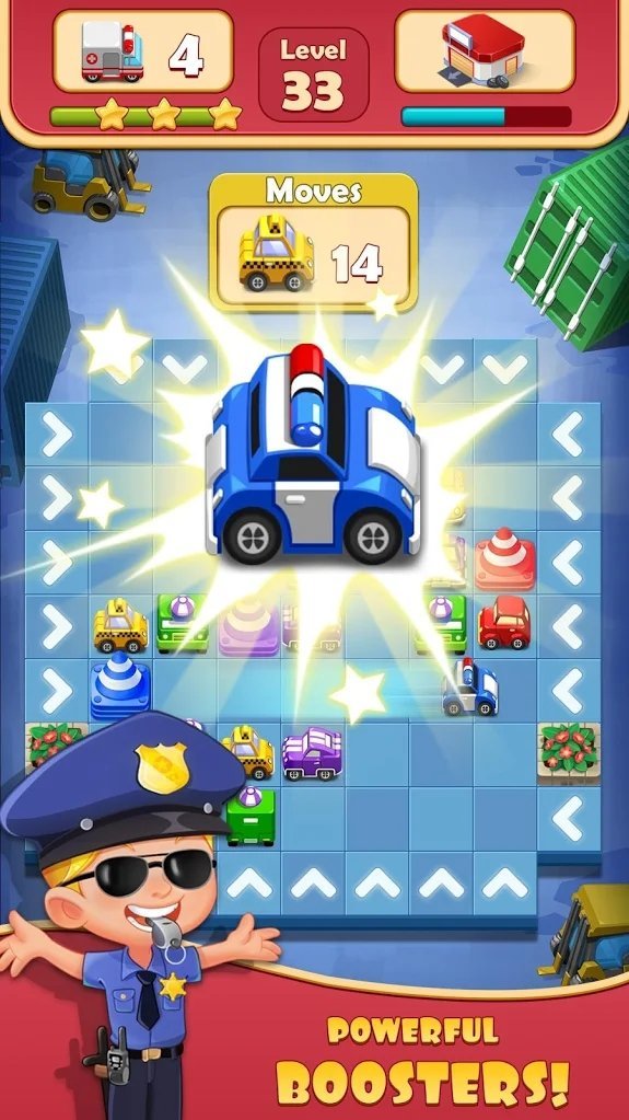1、游戏创新性地融合了消除玩法与路径规划,玩家既要匹配三辆以上同色车辆完成消除,又要为特种车辆规划行进路线。每完成一个救援任务,都会解锁新的城市区域和车辆类型。