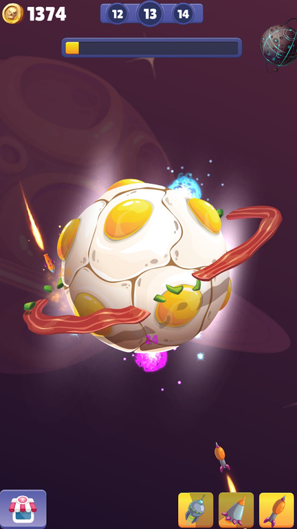 随着游戏深入,玩家需要不断强化火箭性能,解锁更强大的武器来应对越来越坚固的行星;