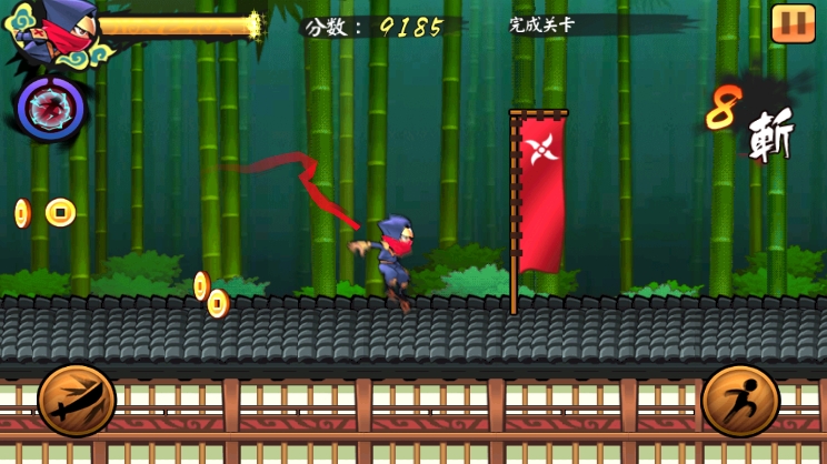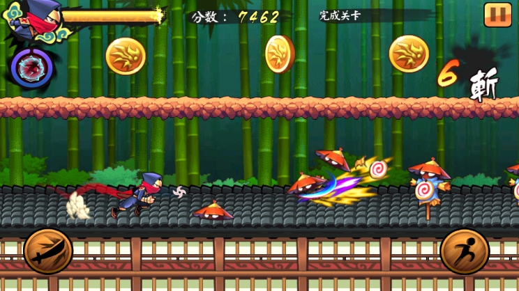 1、操作系统经过精心调校,单指点击实现跳跃,长按触发二段跳,滑动屏幕释放忍术。随着角色成长,可以解锁"空中冲刺"等进阶动作,这些技能不仅能提升机动性,还能形成华丽的连击效果。游戏特别设计了动态难度系统,会根据玩家表现实时调整障碍物密度和敌人强度。