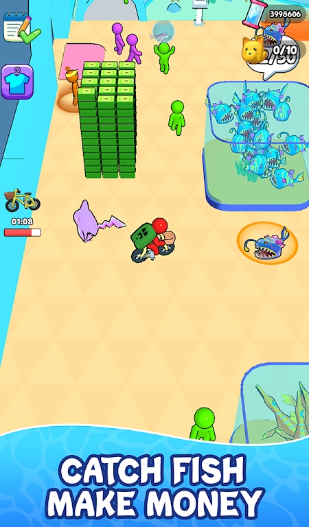 在游戏中,你需要不断优化水族馆的经营策略来提升游客量。通过添加各种装饰品如珊瑚礁、贝壳等,打造独具特色的海底景观。随着游客增多,收入也会相应提高,这些资金可以用来升级设备或引进珍稀鱼类。游戏还设有多种互动元素,比如游客满意度系统,需要你及时清理鱼缸、补充饲料来维持良好运营状态。每个决策都会影响水族馆的发展方向。