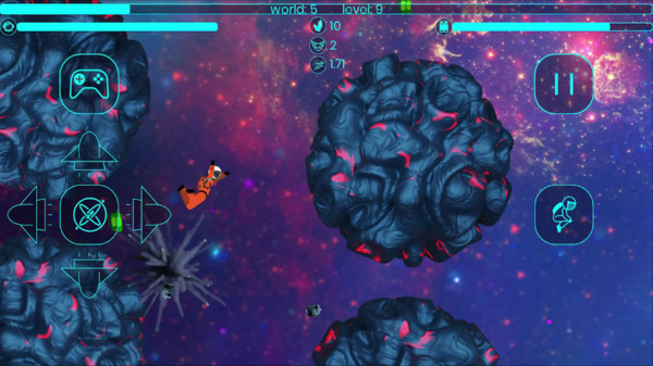 1、玩家需要通过虚拟摇杆和触屏手势操控火柴人完成各种匪夷所思的太空任务,比如在旋转的小行星上保持平衡,或是利用反作用力在空间站之间弹跳穿梭。