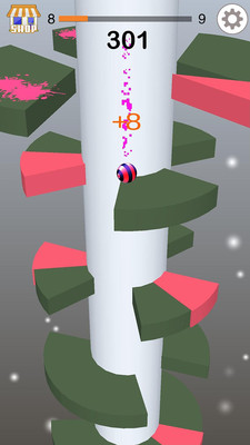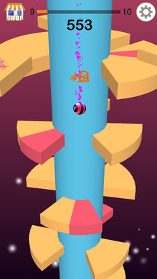 游戏操作简单直观,只需在屏幕上水平滑动手指即可旋转螺旋迷宫,引导跳球精准穿过塔层间隙。随着游戏进行,螺旋塔的旋转速度会逐渐加快,大大增加了游戏难度。