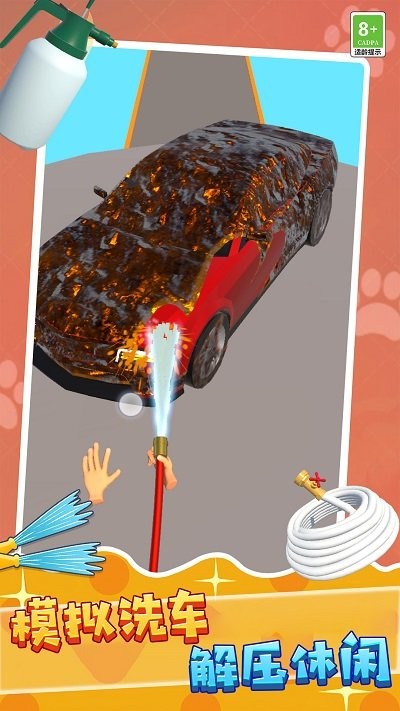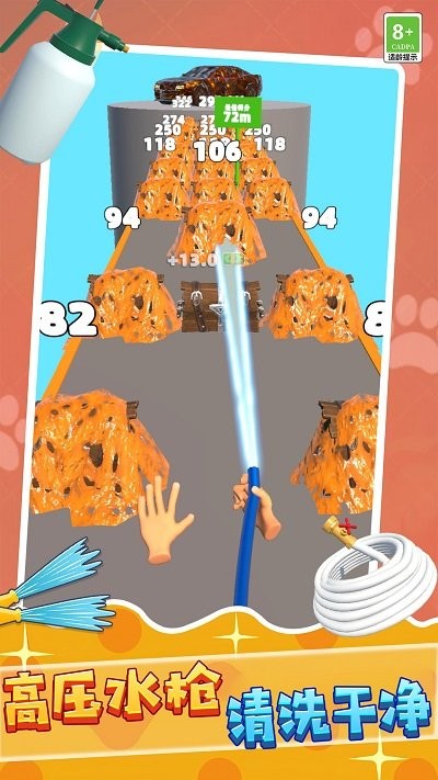 ·这是一款纯粹的解压休闲游戏,没有任何复杂的关卡限制,玩家可以随心所欲地享受清理的乐趣。清爽简约的卡通画风搭配明亮的色彩搭配,带来视觉上的舒适感。游戏采用直观的手指点击操作,通过控制水管喷射角度和力度来完成清理任务。玩家可以使用高压清洗机深层清洁各种污渍,赚取金币升级装备。随着游戏进行,还会解锁更多有趣的清洁工具和特殊效果。